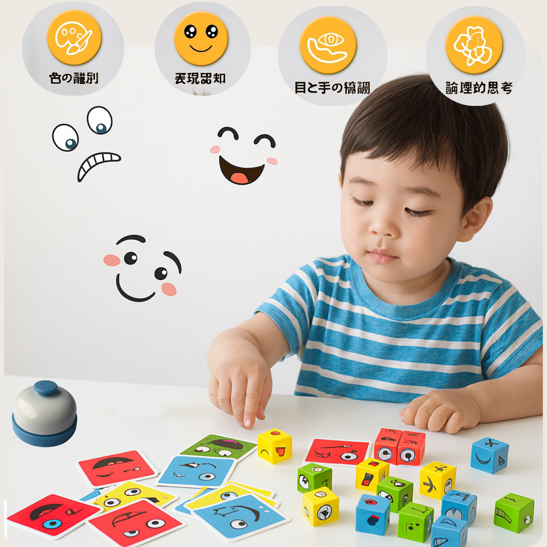 表情を作ったりマネしたりすることで、「嬉しい」「悲しい」「びっくり」など感情を理解する力が自然と身につきます。感情表現とコミュニケーションの練習に最適です